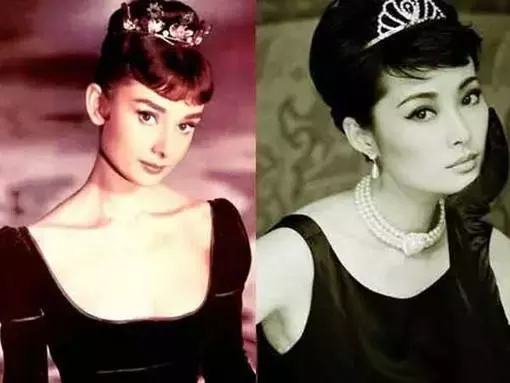 袁立曾模仿过赫本在《蒂凡尼早餐》里的一个造型,被称为东方的奥黛丽·赫本。