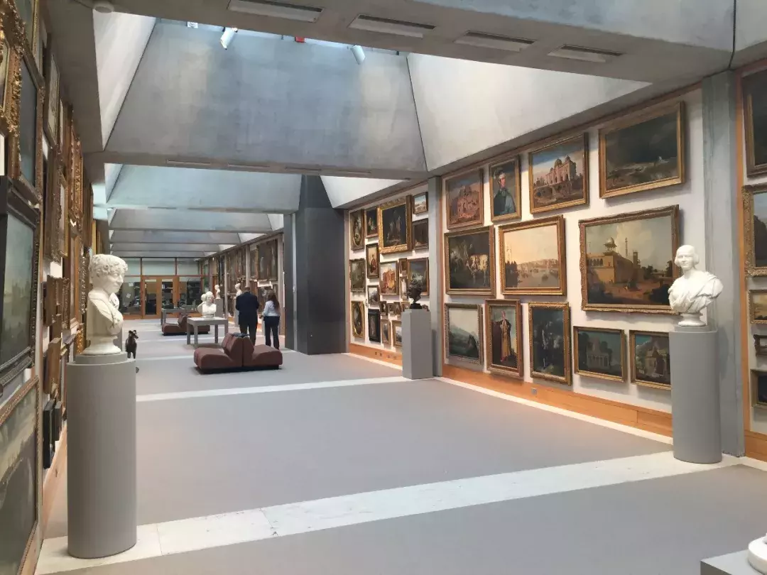 后来我们还参观了校园里的其他几个博物馆,包括耶鲁英国艺术中心和耶鲁艺术博物馆等。耶鲁英国艺术中心号称是美国收藏英国艺术品最多的博物馆,而所有藏品均为耶鲁校友所赠。我看到一些老师带着学生来到这里,向他们进行现场讲解。有这么多实物做参考,老师的教学自然得心应手,而学生学起来也更加容易理解。
