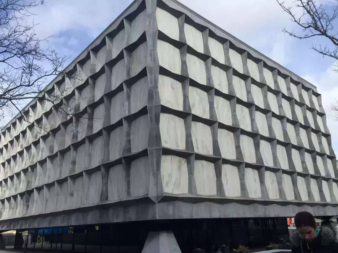 我们随后来到耶鲁的贝尼克珍本与手稿图书馆。这座1963年竣工的图书馆是世界上最大的古籍善本图书馆,里面藏有50万册珍本图书和数百万册手稿,包括一本欧洲最早的活字印刷本——古腾堡圣经。据说全世界也只有21部完整的古腾堡圣经。