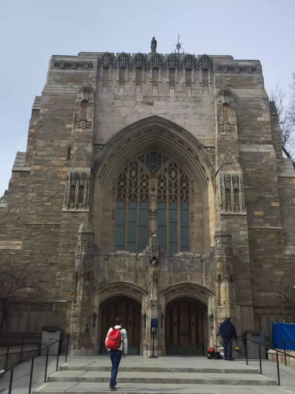校校友史德林捐款修建的耶鲁大学最大的图书馆——史德林图书馆的正门 江亚平 摄