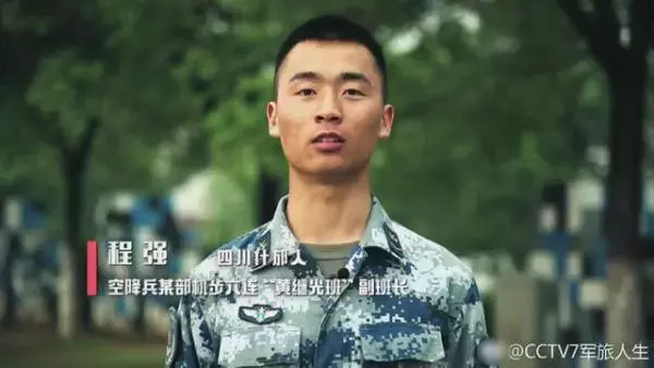 十年后,他的梦想真的实现了。今天的程强,不仅如愿当上了空降兵,还成了“黄继光班”的副班长,终于穿上了这身军装,圆了儿时的梦。