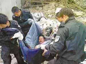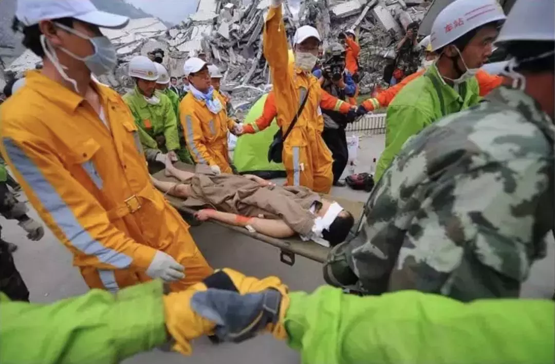 2008年5月13日早晨,被埋20小时后,解放军救出了废墟里的郎铮。