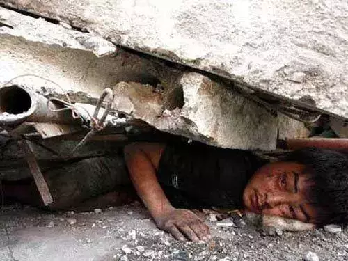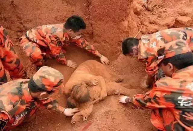要是可以,她们会像这位母亲一样,将孩子紧紧地护在身下,紧紧地,哪怕瓦砾、泥土沉重地倾泻在她身上,也一动不动,直到救援人员来临。