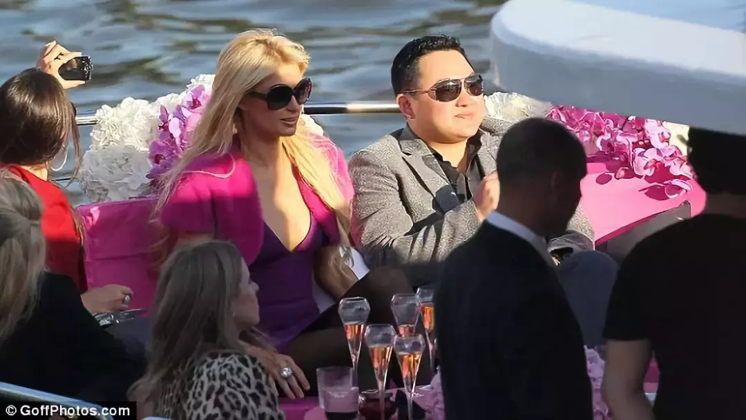 2010年在巴黎的一艘船上与希尔顿参加宴会