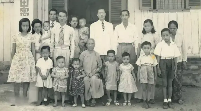 1950年代中摄于印尼耶加达的全家福,后排左四为田家炳