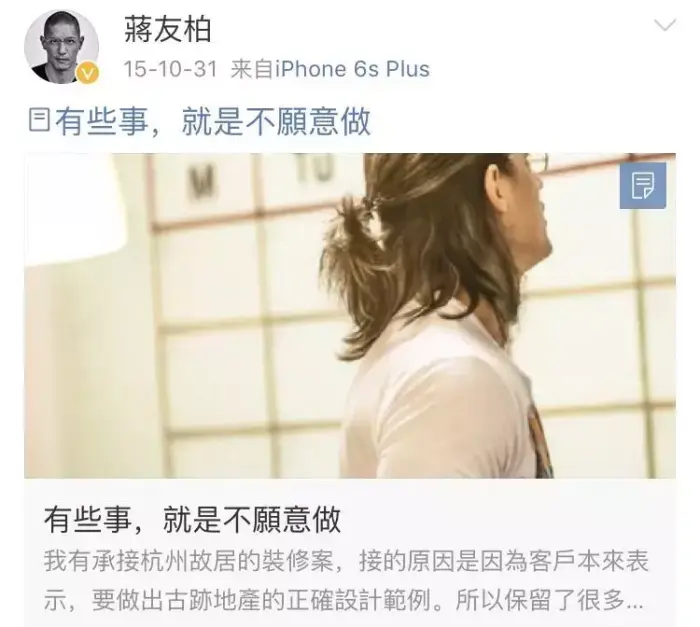 最初,连蒋友柏的母亲也不能理解:“一起坐下来吃饭,别人的儿子是医生、律师,轮到自己的儿子,开设计公司”。