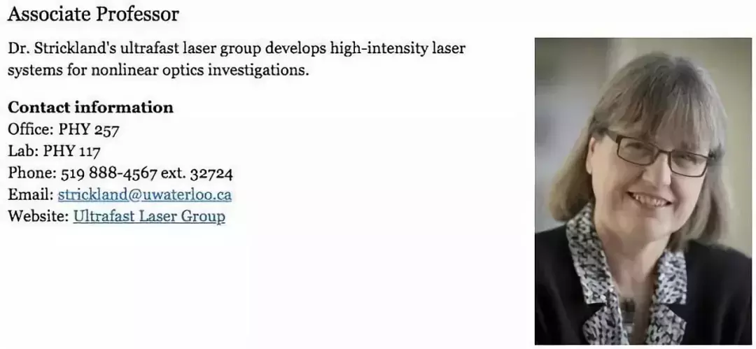 而对于名利的追逐,斯特里克兰显然也完全没当回事。当地媒体《滑铁卢纪事报》发现,这位刚拿了诺贝尔物理学奖的科学家,居然20多年了还只是学校的一个副教授,记者想挖个“大新闻”出来,兴致勃勃地去提问了。她却替滑铁卢大学辩解,说这完全不是学校的错,因为她从来没打算申请过正教授的职位。