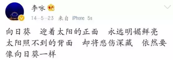 李咏曾在微博上说:向日葵,迎着太阳的正面,永远明媚鲜亮,太阳照不到背面,却将悲伤深藏,却依然要像向日葵一样。