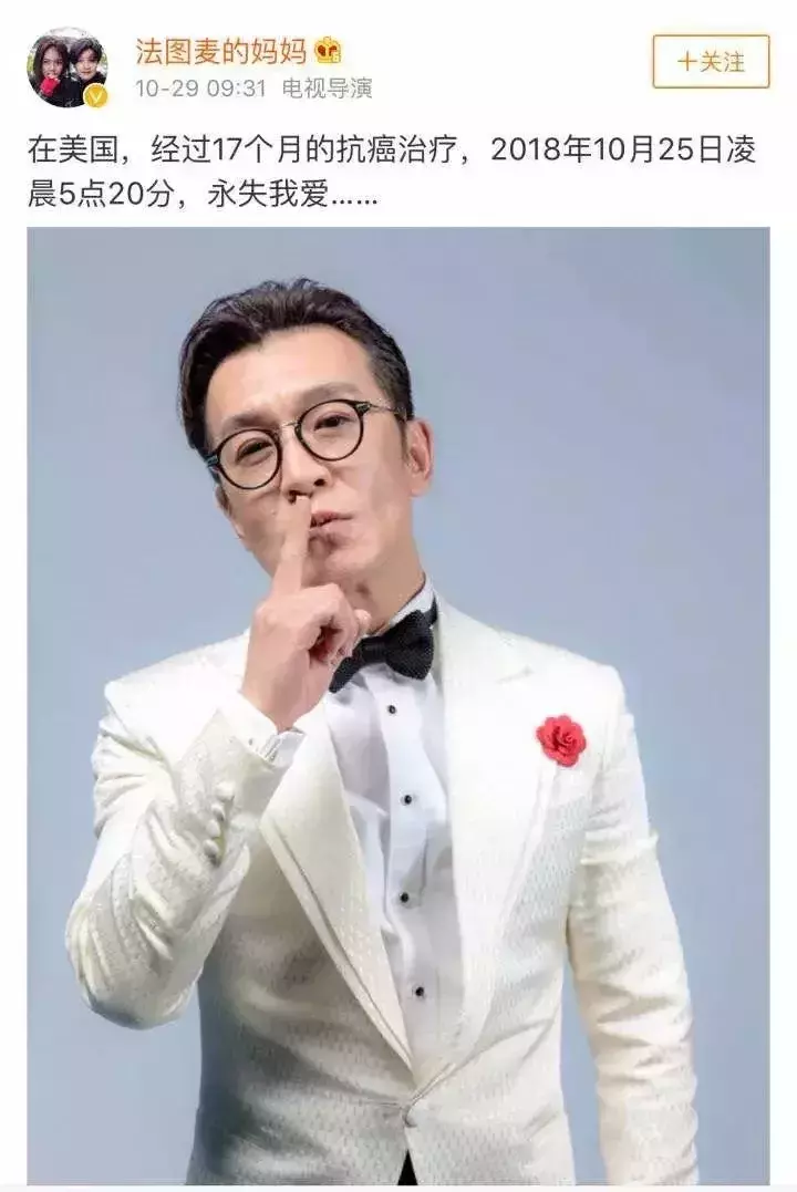 今天,央视著名主持人李咏的妻子哈文发文宣布李咏去世:在美国,经过17个月的抗癌治疗,2018年10月25日凌晨5点20分,永失我爱……