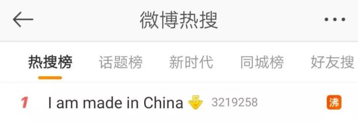 #I am made in China#这一话题也很快成为微博热搜榜第一。