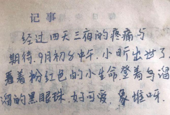 ▲ 母亲的日记:经过四天三夜的疼痛与期待,9月初8中午,小昕出世了……