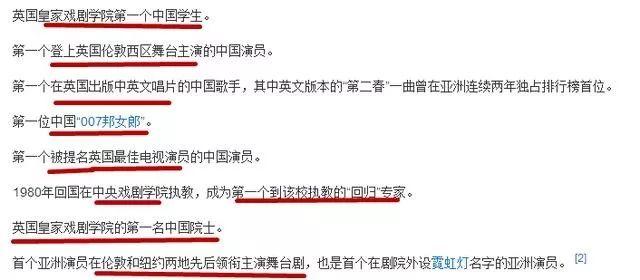 “我是好莱坞电影里第一个真实的东方女人形象,这毫不夸张。之前,华人女性只有两种角色,佣人或是三从四德的妇女。男人则不是弱者就是流氓。东方演员长期以来是被压迫的。我是反抗者,虽然代价很大,但我觉得是值得的。”