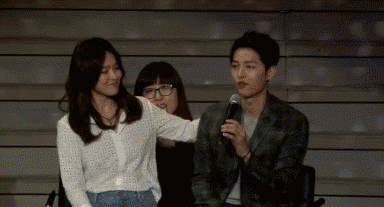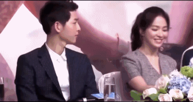 在成都粉丝见面会上,当宋慧乔要坐到椅子上时,宋仲基因为担心她裙子太短走光,主动跟工作人员要来白色毛毯,盖到她的腿上,超级细心。
