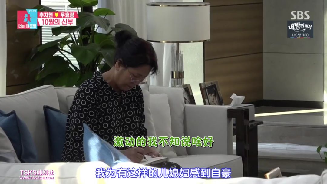 当她把于晓光的父母接到韩国旅游时,不仅带着公婆游山玩水,而且一直牵挂着二老的健康,她带他们去体检,对婆婆一脸认真地说,“从头到脚都要检查,妈。”