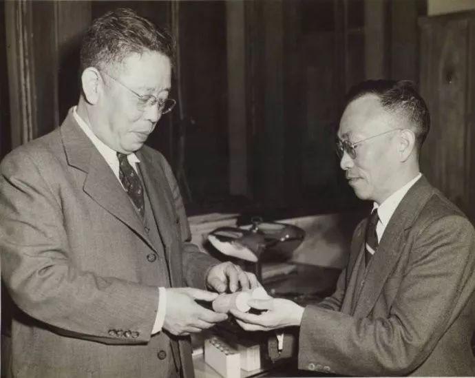 ▲ 汤飞凡向刘瑞恒介绍国产青霉素产品