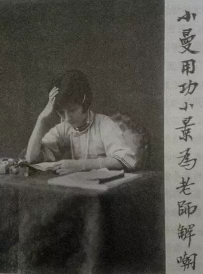 ▲ 陆小曼送给胡适的照片,右题“小曼用功小景为老师解嘲”