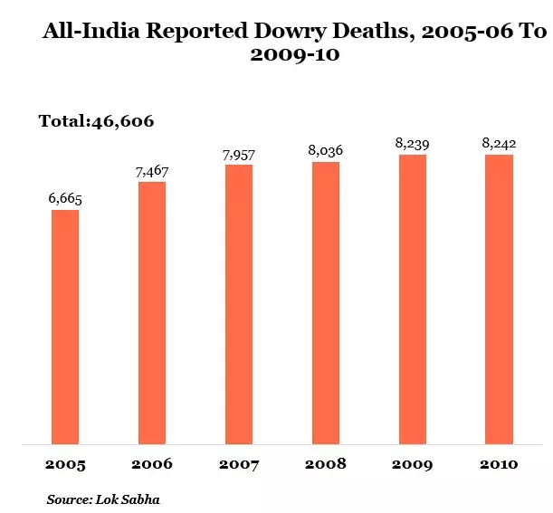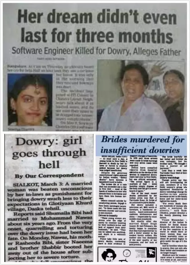 在印度女孩子被认为是赔钱货,家人不愿意多花钱让她们受教育,总是想办法以最快的方式把她们嫁出去,嫁妆价值的高低很大程度上直接决定了女方在婆家的地位,不少家庭暴力和虐待现象都是由于女方嫁妆过低而造成的。