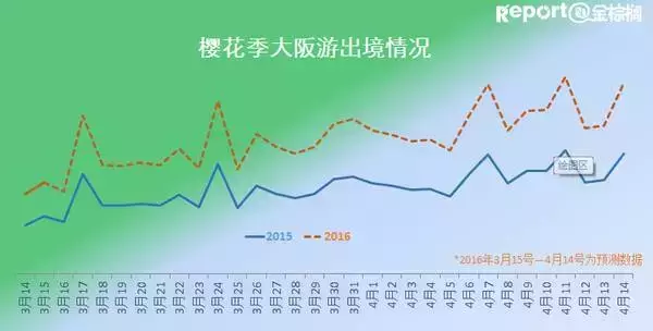 赴日旅游,在樱花季达到顶峰。根据金棕榈旅游大数据研究院监测,2016年3月上半月,与2015年相比,内地赴大阪游客增幅达58.6%。