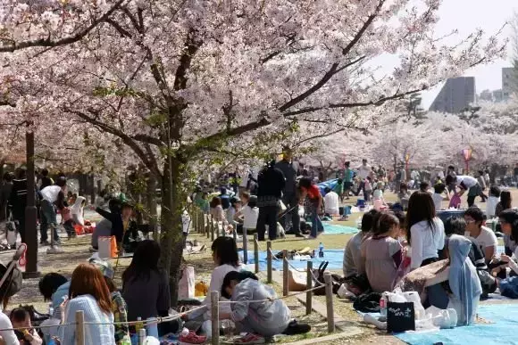 每年3月15日至4月15日的樱花节期间,樱花树下,亲朋好友铺上垫子,聚会宴饮,唱歌跳舞,日本全国上下几乎是一场花事的狂欢。