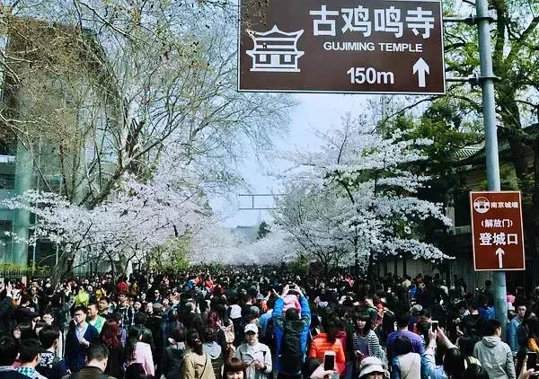 南京的鸡鸣寺、武汉的武大校园、北京的玉渊潭公园、上海的顾村花园……赏樱圣地,花瓣零落,人潮涌动。
