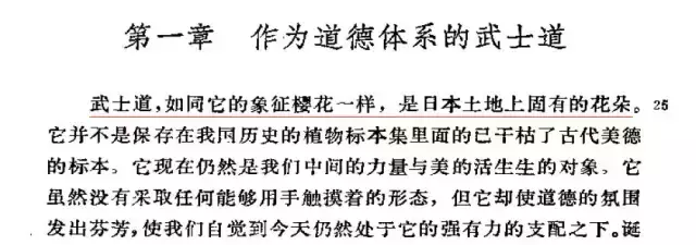 明治学者新渡户稻造在名著《武士道》一书中,开头就指出:“武士道,如同它的象征樱花一样,是日本土地上固有的花朵。”
