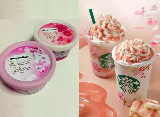 而除了观赏之外,日本人还将樱花、樱花叶制成各种食物,哈根达斯、星巴克等国际品牌,也入乡随俗地推出樱花主题产品。