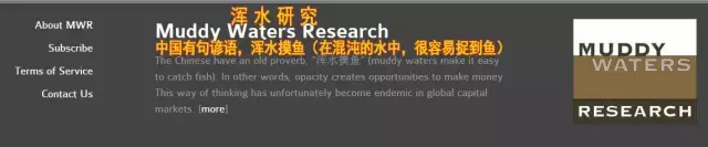 为什么叫浑水?该公司网站上写的很清楚,浑水取的便是中国谚语“浑水摸鱼”之意。也就是说,先把水搅浑,然后再摸鱼。
