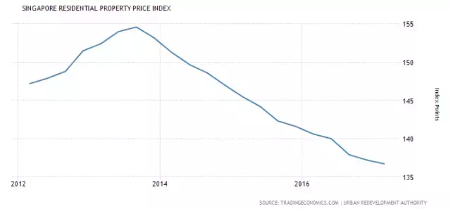 新加坡近5年住宅价格指数(数据来源:tradingeconomics.com)