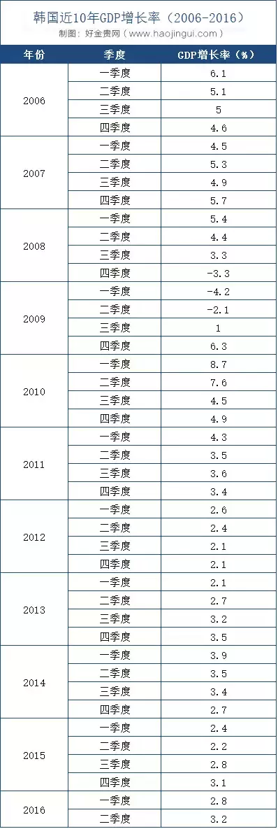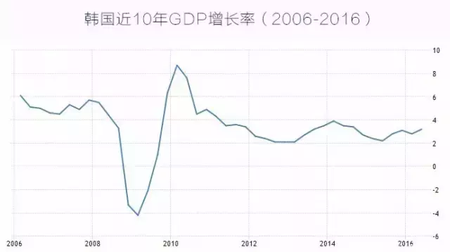 2006-2016年韩国GDP增长率