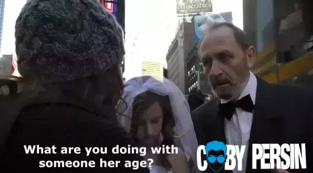 YouTube上的明星科比· 培辛在纽约时代广场进行了一次社会实验:安排一对老少夫妻拍婚纱照,看路人如何反应,视频中不断有人来质问老人为什么要这么做,但他们也许不知道在自己国家的一些地方,这种结合是合法的
