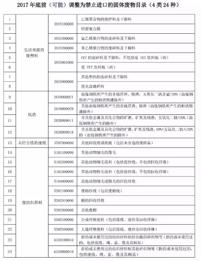 7月19日,中国正式向世界贸易组织(WTO)提交文件,要求紧急调整进口固体废物清单,拟于2017年底前,禁止进口4类24种固体废物,包括生活源废塑料、钒渣、未分类的废纸和废纺织原料。这一消息将洋垃圾又一次推上了风口浪尖。