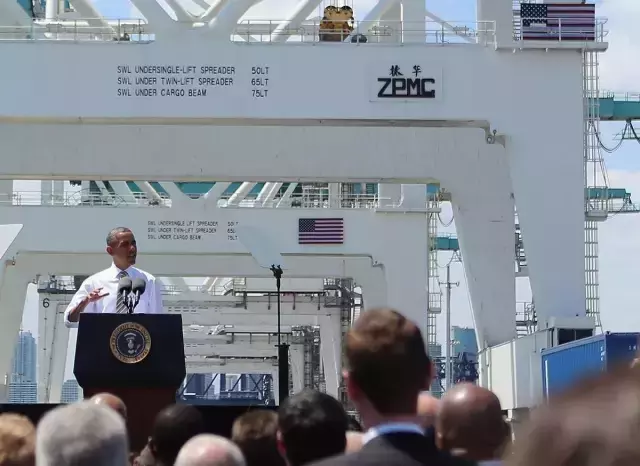 当然,限制“中国制造”这个老调,该弹的时候还得弹,也因此,美国总统还闹了个大笑话。2013年3月,奥巴马在迈阿密港口演讲,鼓励美国使用“美国制造”,媒体全程直播。可是,明明一个“振美”的演讲,最后却帮“振华”打了个广告。