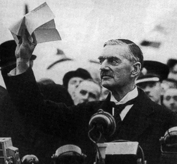 当张伯伦回到伦敦,面对来迎接他的伦敦市民挥舞着协议文件声称:孩子们,我从欧洲带来了一个时代的和平。