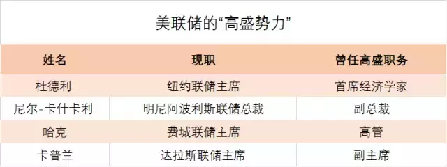 美联储由分布美国各地区的12个联邦储备银行组成,其中有4个地区的主席与高盛有渊源,这意味着,“高盛帮”占到了三分之一强。