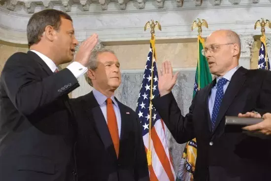 保尔森(右)宣誓就职