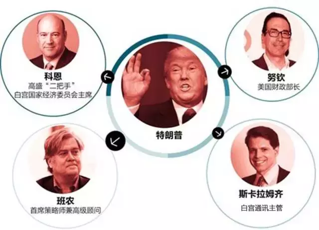 除了努钦,特朗普的白宫“朋友圈”更是群魔乱舞,挤进了白宫国家经济委员会主席科恩(前高盛总裁)、首席策略师兼高级顾问班农(前高盛投资银行家)、白宫通讯主管斯卡拉姆齐(前高盛投资银行家)。
