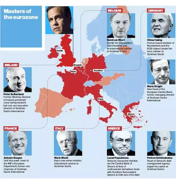 实际上,“高盛帮”的势力早已超越了美国边境,遍布世界。包括澳大利亚总理马尔科姆·特恩布尔、英国央行行长马克·卡尼、尼日利亚财政部长奥卢瑟根·阿咖等国家的央行行长、政要都出自高盛。