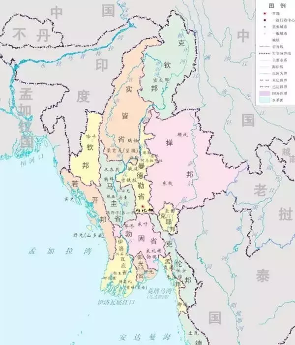 缅甸西部的若开邦,曾经出现一个“阿拉干王国”,它强盛时期“横跨两河”(恒河伊和洛瓦底江),面积广阔,今天的缅甸首都仰光也在它的领土范围之内,“仰光”的名称就来源于若开语。