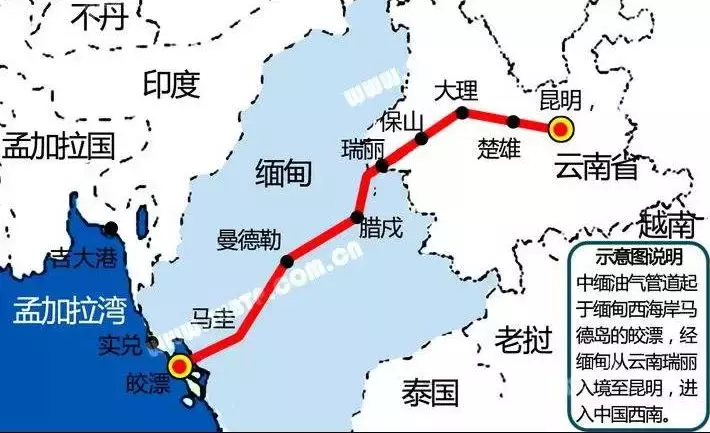 中缅油气管道示意图