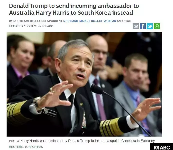 一是早在今年2月,特朗普就打算提名哈里斯出任驻澳大利亚大使,本来在4月24日,美国参议院外交委员会将举行听证会。这是美国任命驻外大使程序上十分关键的一步。但突然叫停!参议院外交委员会解释,“应政府要求”听证会推迟到5月份。