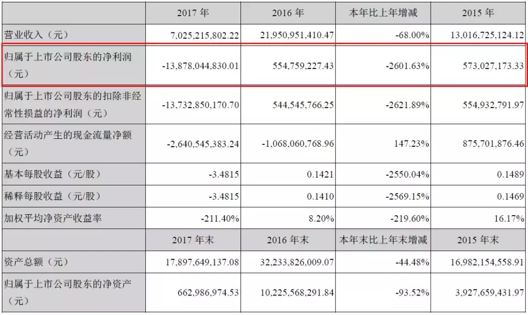 乐视网披露了2017年年报,公司净利润巨亏138.78亿元。