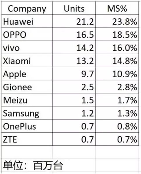 事实上,中国国内智能手机销量前四名,已被国产手机包揽。苹果只能屈居第五,三星更是跌落到第八。