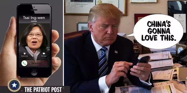 特朗普上台以来,还干了两件破天荒的事:一件事是特朗普在当选后,“破天荒”接了蔡英文的电话,还公开称其为“台湾总统”,这是台美1979年中断外交关系以来,台湾地区领导人第一次和美国当选总统对话。