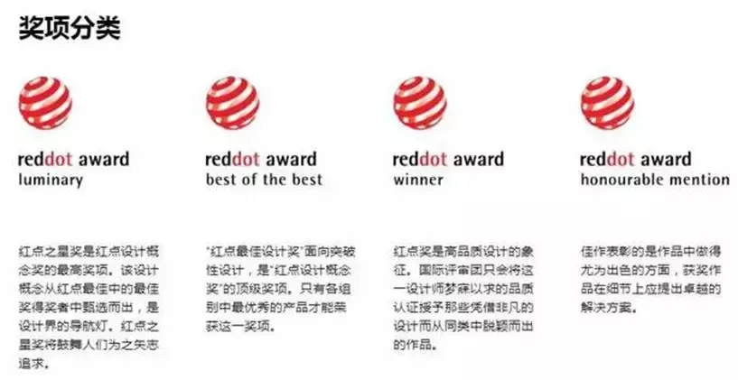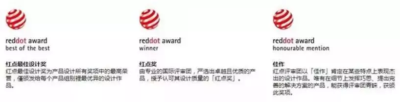 乍眼一瞅,我还真不知道这些奖都是些啥玩意儿,哪个是一等奖哪个是二等奖。直到后来就有人跟我说了,其实,在这么多奖项中,“红点奖”要数获奖类别中的低级别奖项了。
