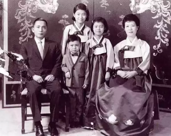 第一排左起:父亲朴正熙、弟弟朴志晚、妹妹朴槿令、母亲陆英修;第二排为朴槿惠