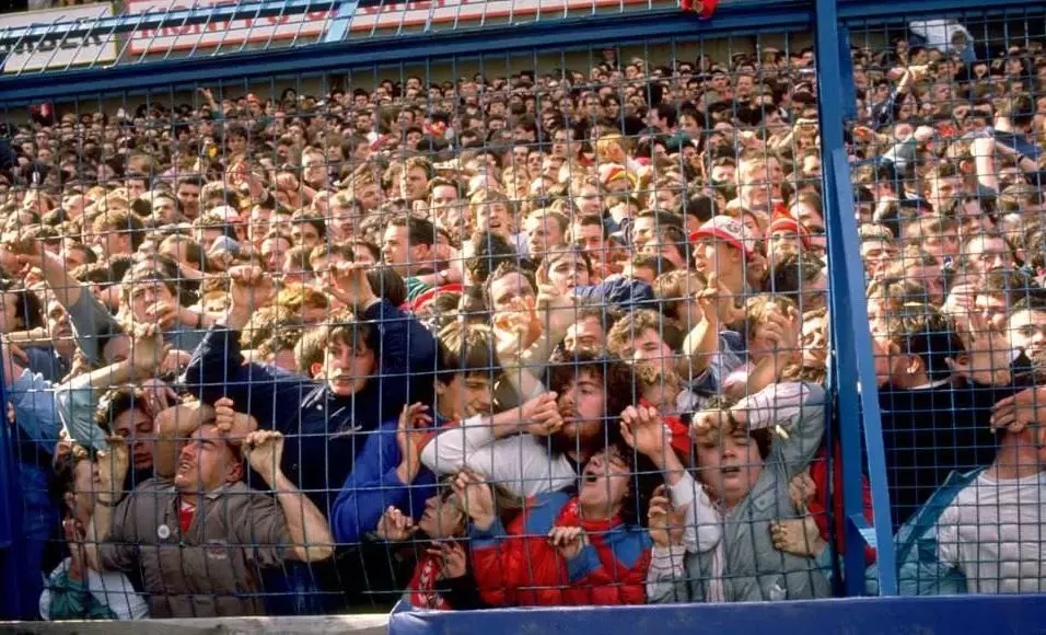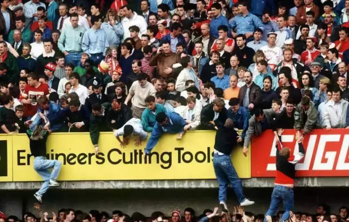 当场内传出两队球迷欢呼声时,场外球迷情绪激动——咱们也是名扬世界的利物浦球迷,居然敢拦着我们不让入场?场外情况几近失控。安保人员决定放人入场,2000多名球迷从C门鱼贯而入,挤上同一看台,原本拥挤的看台更加不堪重负。人越来越多,坐在下方的球迷被人浪挤在了场边铁丝网上,坐在上方的球迷一看情况不对,立刻向上逃散。