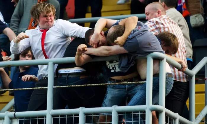 煮熟的鸭子飞了,凯尔特人球迷一脸黑线。比赛结束10分钟后,实在气不过的凯尔特人球迷开始反击,双方混战一团。这是一场赤手空拳的比试,3万多人的群殴,场面极其壮观。由于空间小,人数多,一场混战下来造成66人死亡,150多人重伤。