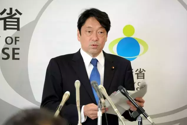 7月10日,日本防卫大臣小野寺五典就救灾问题在记者会上发言(图片来源:朝日新闻)