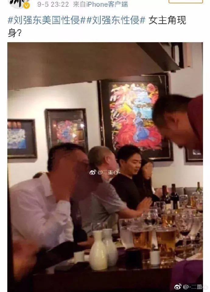随后,又有“刘强东美国性侵女主角现身?”的帖子出现。网友@二重心- 在微博上发布了一张疑似刘强东晚宴时的图片,在照片上,一名坐在刘强东身边,被传“疑似受害人”的女孩,面部没有任何遮拦。不过,很快这名PO主的做法就引起了许多网友的反感和攻击。