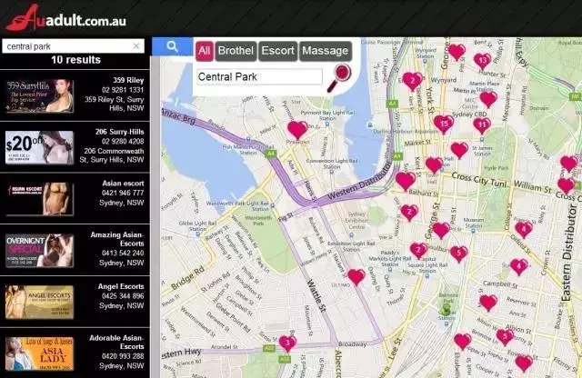 打开成人网站输入Central Park,可以看到数十家妓院开设在大楼里,屡禁不止。